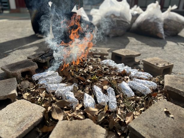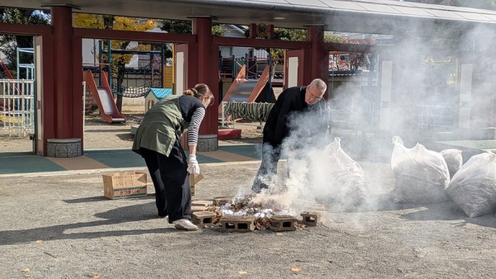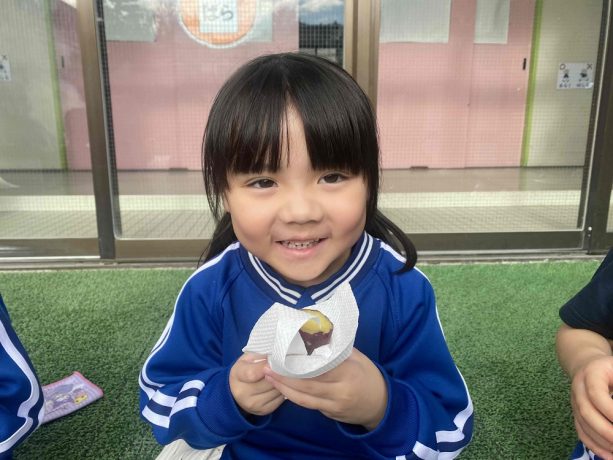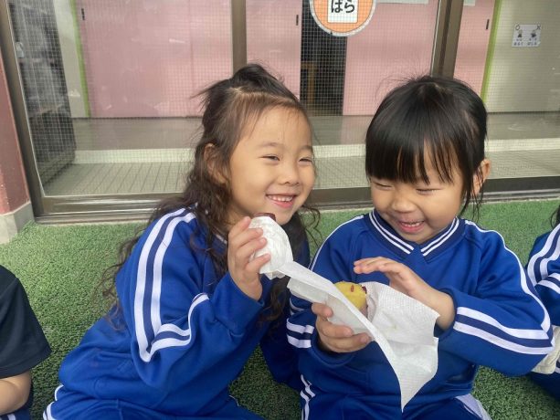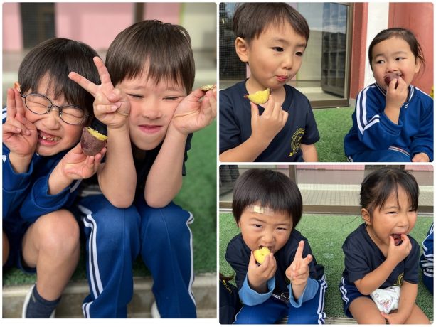 お遊戯会を頑張ったご褒美✨に、先生達が焼きいも🍠を焼いてくれました。