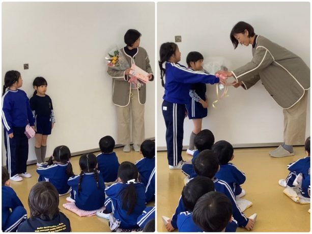 今まで沢山楽しい保育をして下さった先生の退職…みんなでお世話になったご挨拶をしました。
