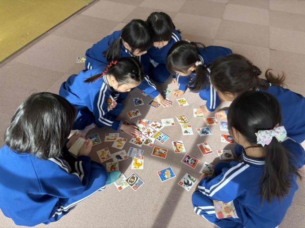 女子チームはカルタにも夢中。