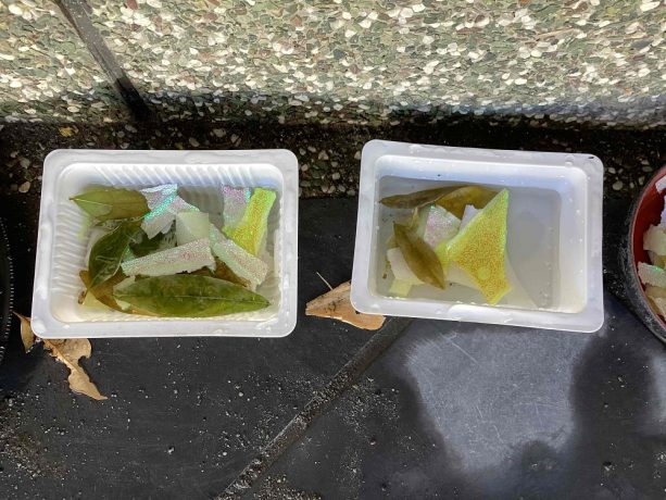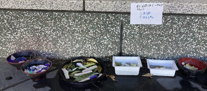 朝、氷った地面の水を発見すると「実験する!」とこんなブースも出来ていました。