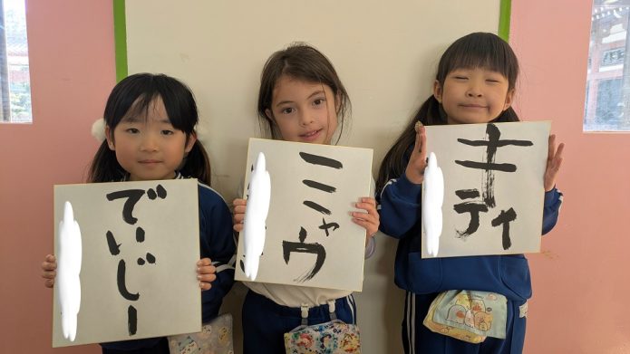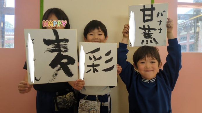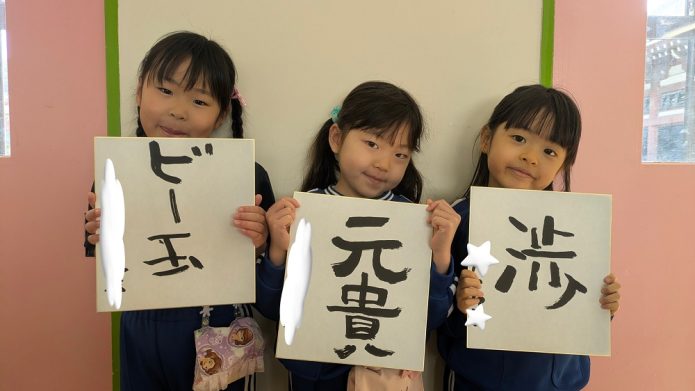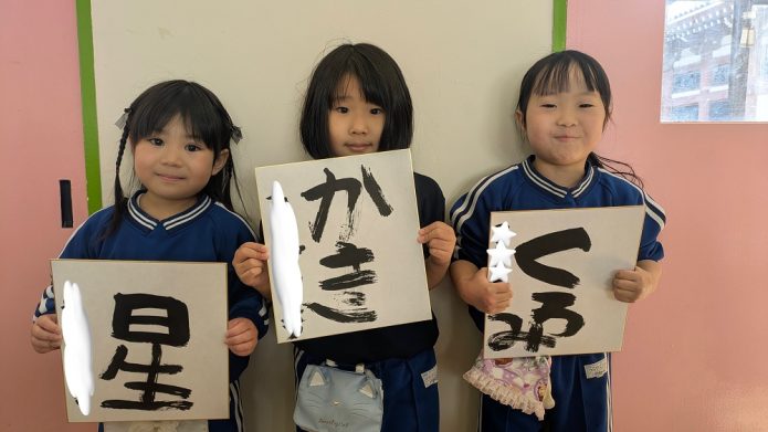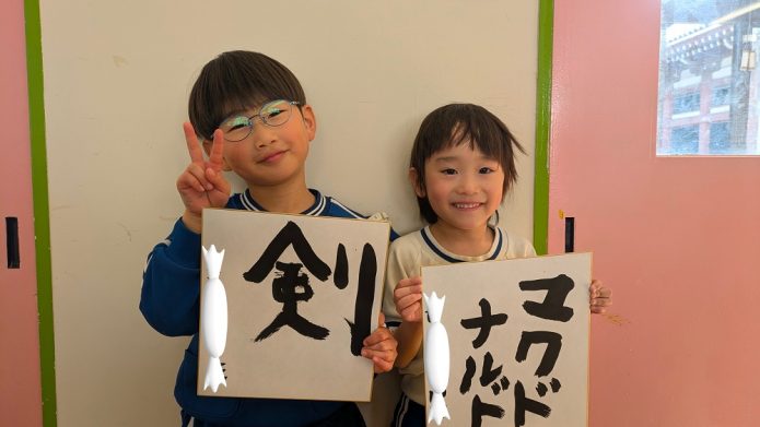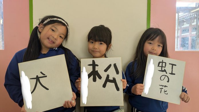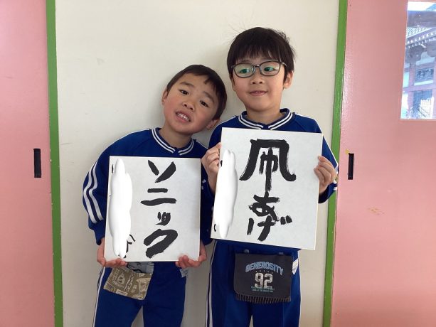「書初め」にも挑戦し、みんな好きな文字を書きました!