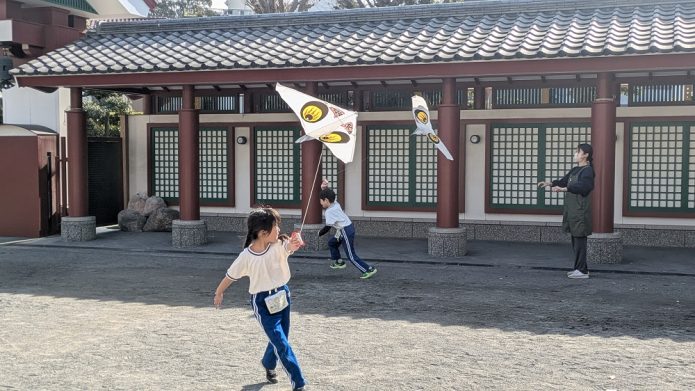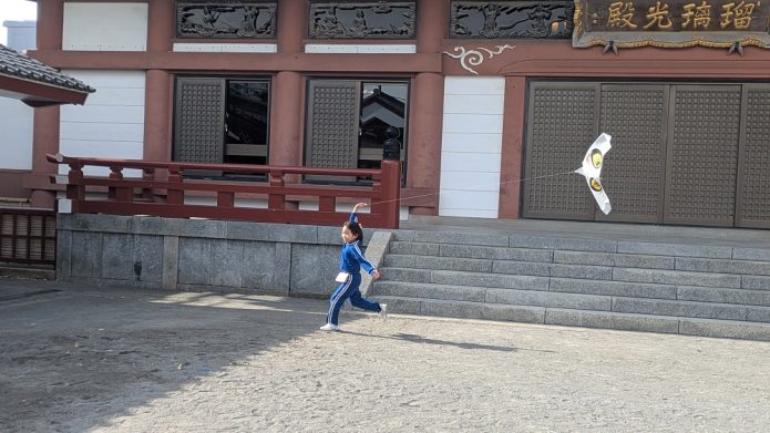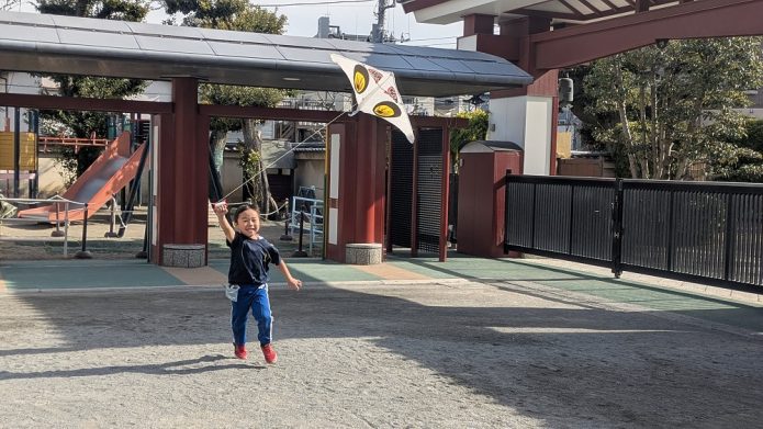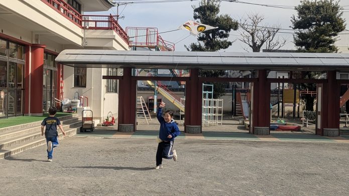 年長さんは、流石の経験値で「凧揚げ」も真っすぐだけでなく、旋回、ぐるぐる